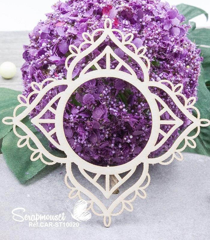 Ce cadre design en carton bois de 0,7 mm d'épaisseur est présente sur une planche mesurant 10 cm x 10 cm.