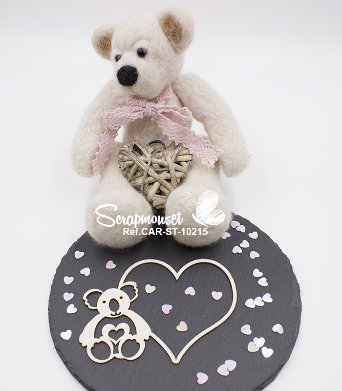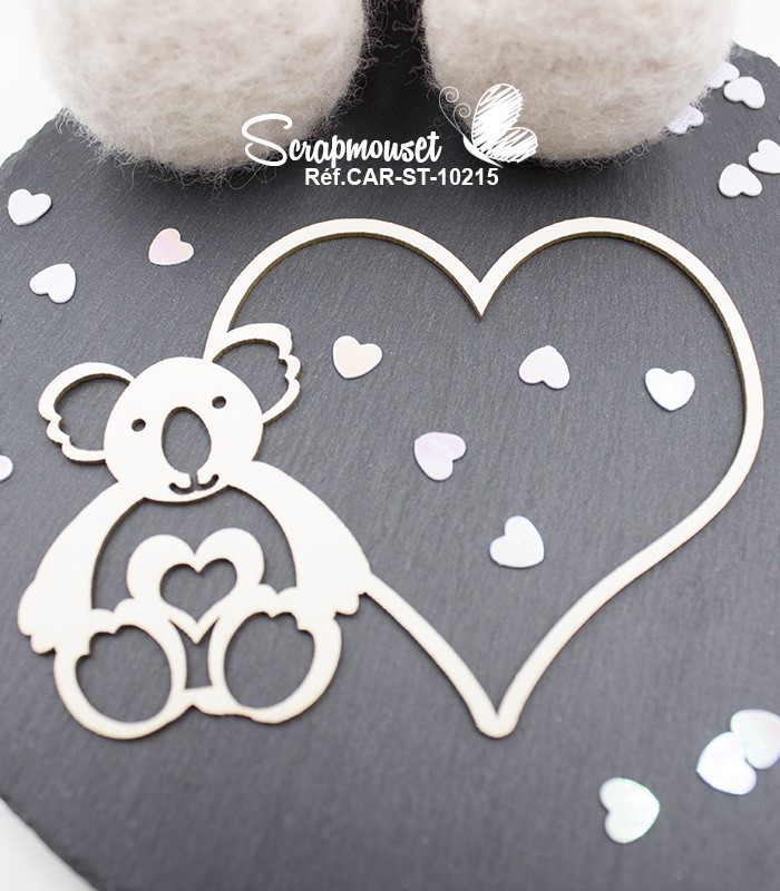 Embellissement cadre petit koala en carton bois sur le thème enfantin pour toutes vos réalisations manuelles et vos projets scrapbooking comme : les pages, les cartes, les albums ou encore le home-déco.
