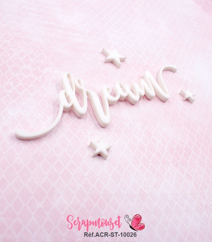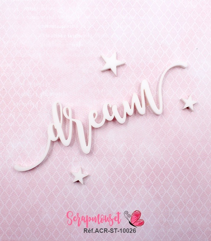 Mot dream en Acrylique Blanc 10,6 x 3,3 cm SCRAPMOUSET