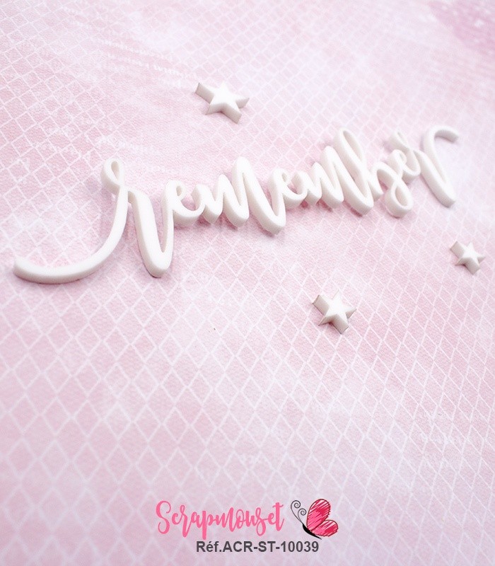 Mot remember en Acrylique Blanc 14,7 x 3 cm SCRAPMOUSET