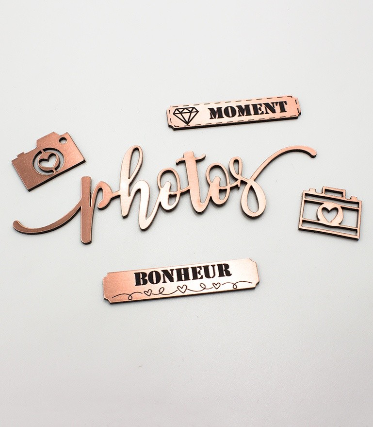 Cette découpe en Acrylique Rose Gold du mot "Selfie" vous permet d'embellir toute page de scrapbooking, couverture d'album, carte, objet home déco selon votre imagination.